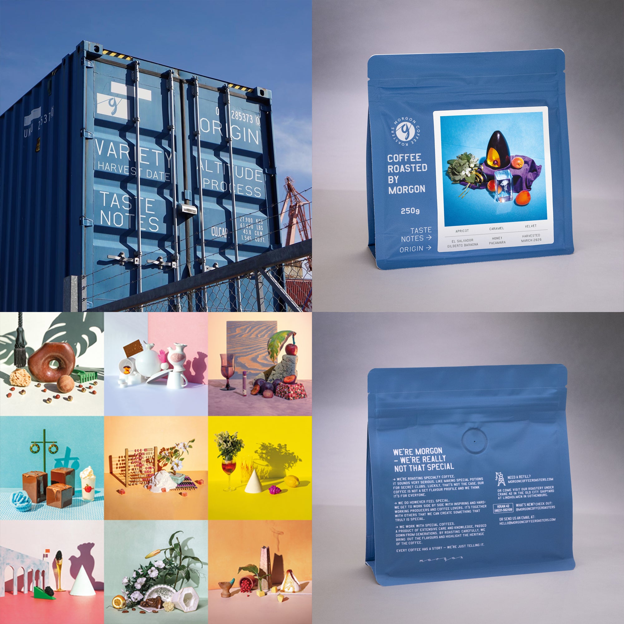 Our square blue bags are inspired by the shipping containers found in the old shipyard surrounding our roastery by the docks, similar to the ones that carries our coffee from far away to us in Gothenburg.